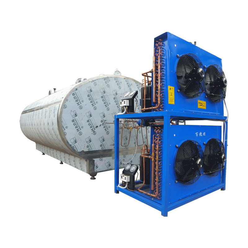 ■ 冷藏罐采用双制冷机组制冷。直冷式蒸发器、风冷式冷凝器,降温速度快,有效防止细菌